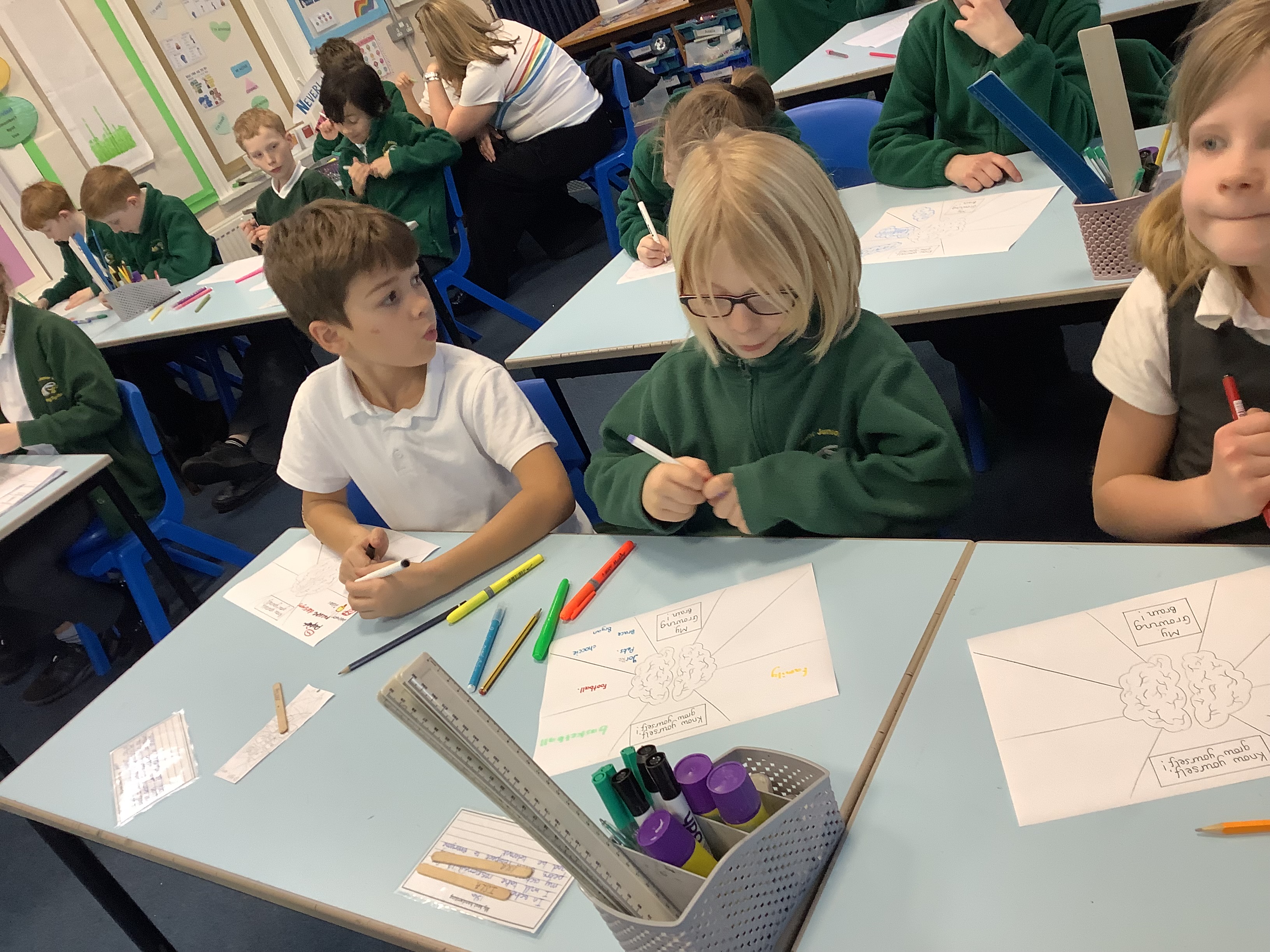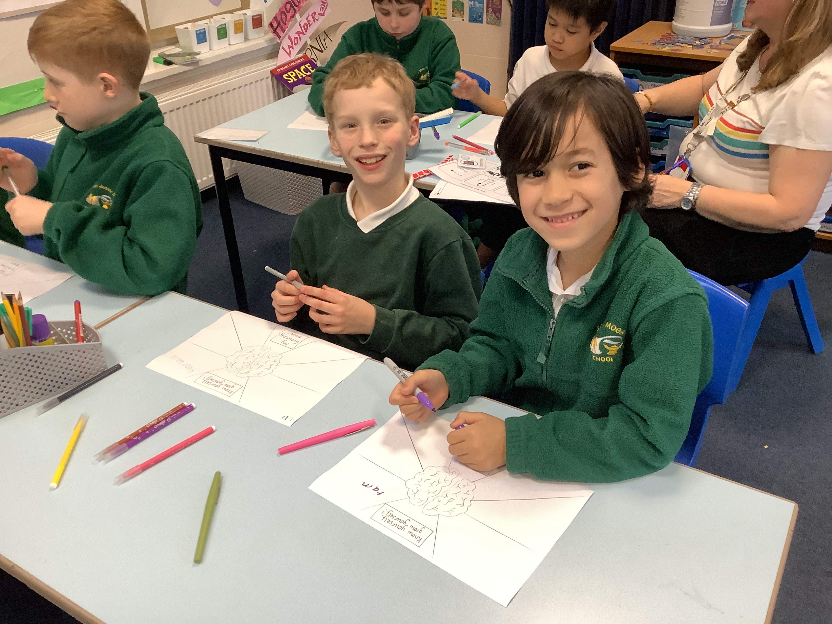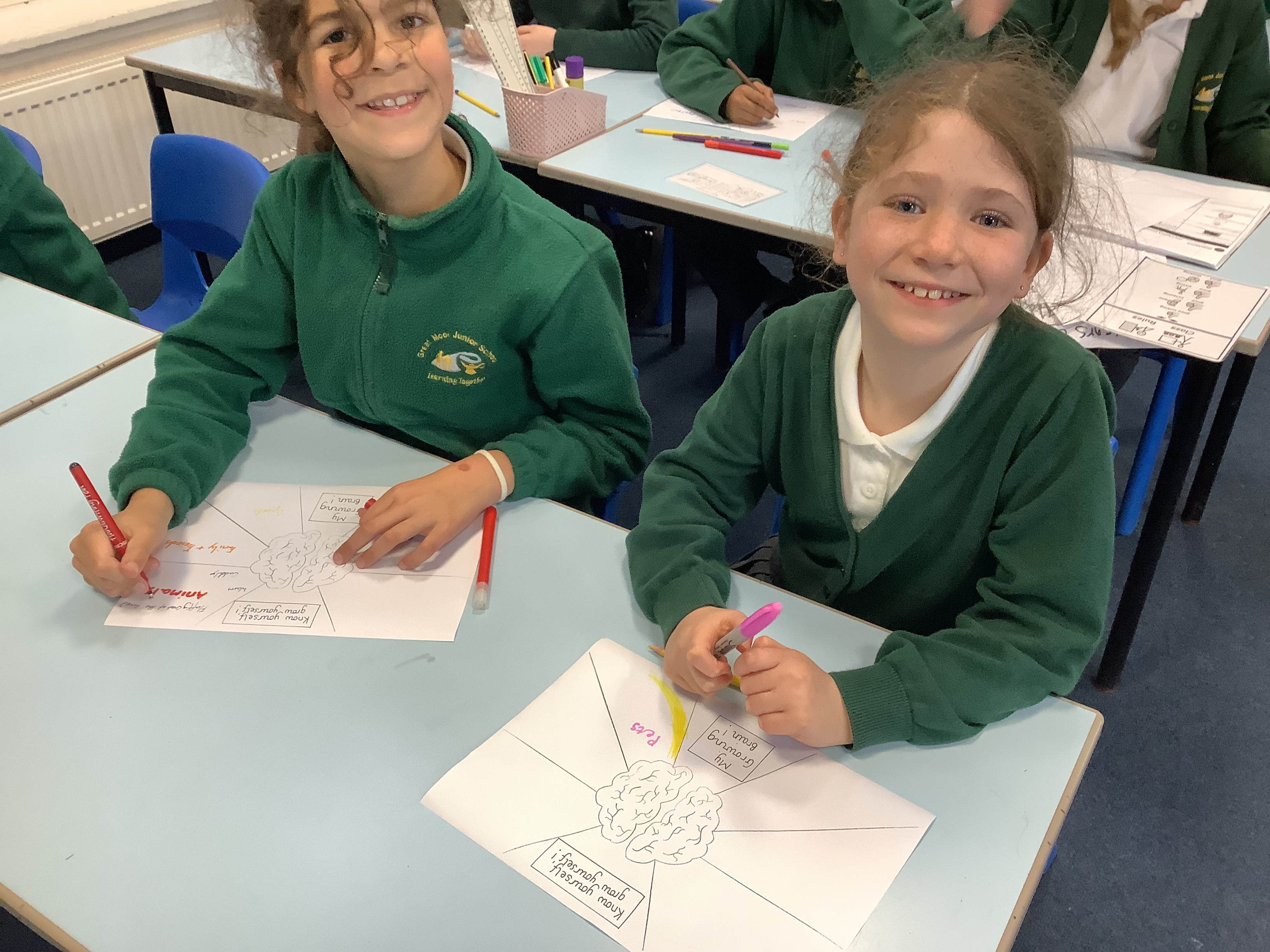 3M and 5OL enjoyed buddying up for Mental Health Week, exploring the theme Know Yourself, Grow Yourself. Together, they created vibrant artwork representing how their brains are growing—showcasing their learning, emotions, and aspirations. It was a wonderful opportunity for collaboration and reflection on personal growth!