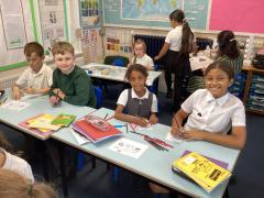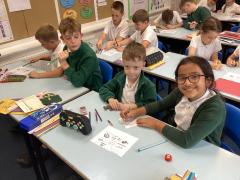 3T and 5H buddied up to celebrate Black History Month by learning all about the incredible Stevie Wonder and his many achievements. Together, they explored his music, talent, and the impact he has made around the world. To showcase their learning, the children designed the inside circles of vinyl records for a colourful and creative display.