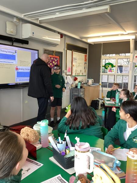 6M were visited today by the road safety team at Stockport to look at what can affect drivers and their stopping time.