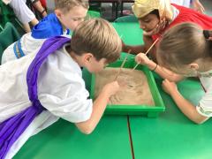 Today, Year 4 had an exciting Greek Day! The children tasted delicious Greek food, became archaeologists and went on a scavenger hunt. They discovered some of the flavours that people in Greece have enjoyed for thousands of years and carried out their own archaeological ‘dig’. Using brushes carefully, they uncovered hidden artefacts and learnt how important these discoveries are for understanding the past. The children also took part in a scavenger hunt to find out what the Ancient Greeks invented and how their ideas still influence our lives today. Everyone looked fantastic in their amazing Greek outfits. What a wonderful day!