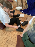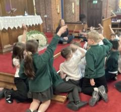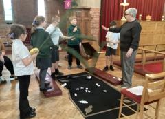 Year 4 really enjoyed visiting St. Saviour's to learn all about the Easter Story. We looked at Palm Sunday, Jesus washing the disciples' feet, the Last Supper, the cross and the resurrection. The whole class did an excellent job of displaying our school values and they represented the school beautifully.