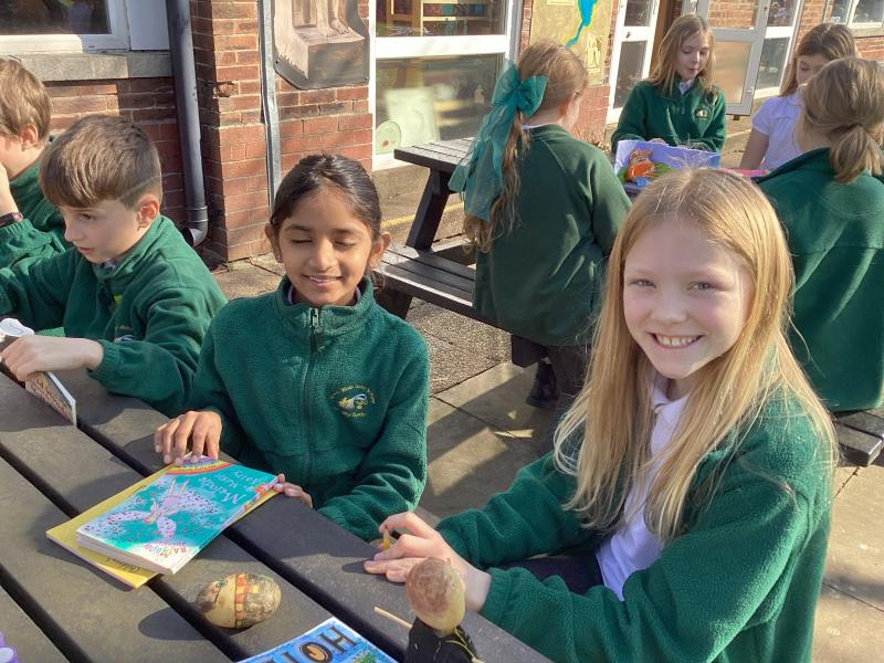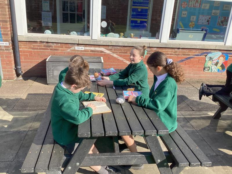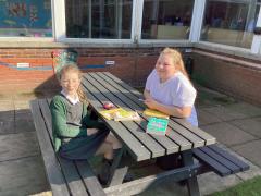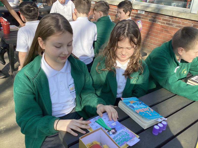 6M and 4M had a lovely time sharing their World Book Day potatoes and they read to one another.
